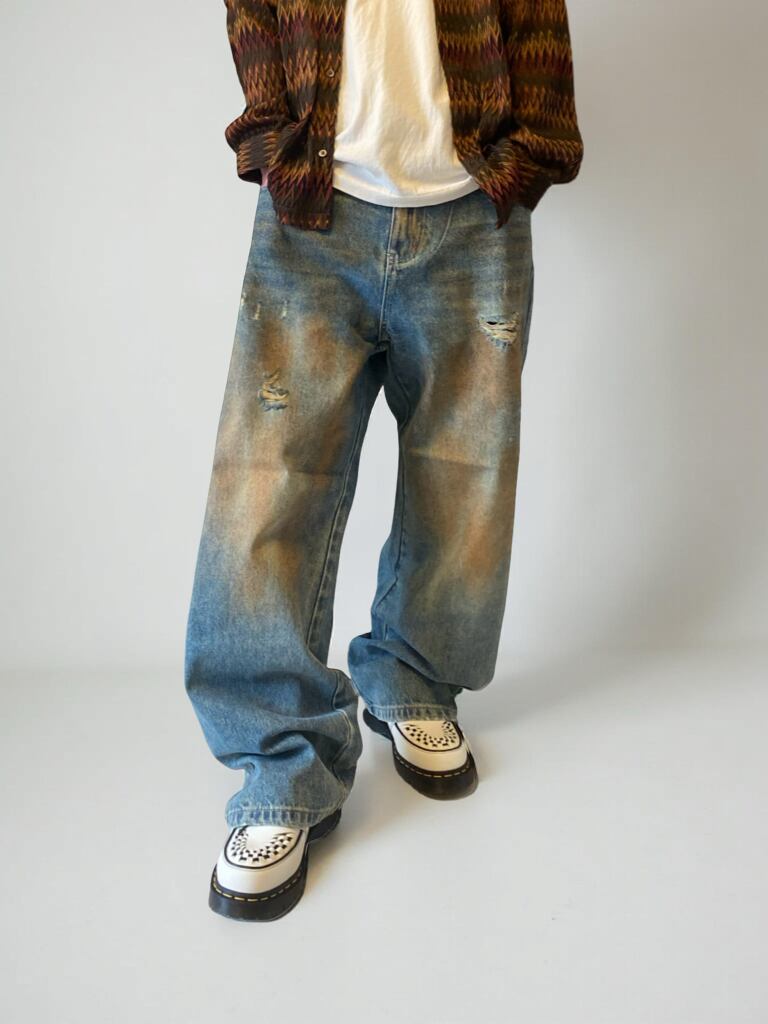 《グランジ》ダーティサンドウォッシュワイドデニム ヴィンテージ加工