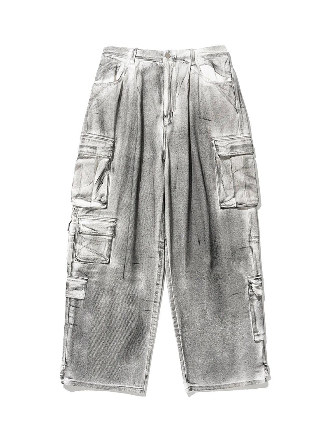 《グランジ》ダーティウォッシュ加工ワイドカーゴパンツ