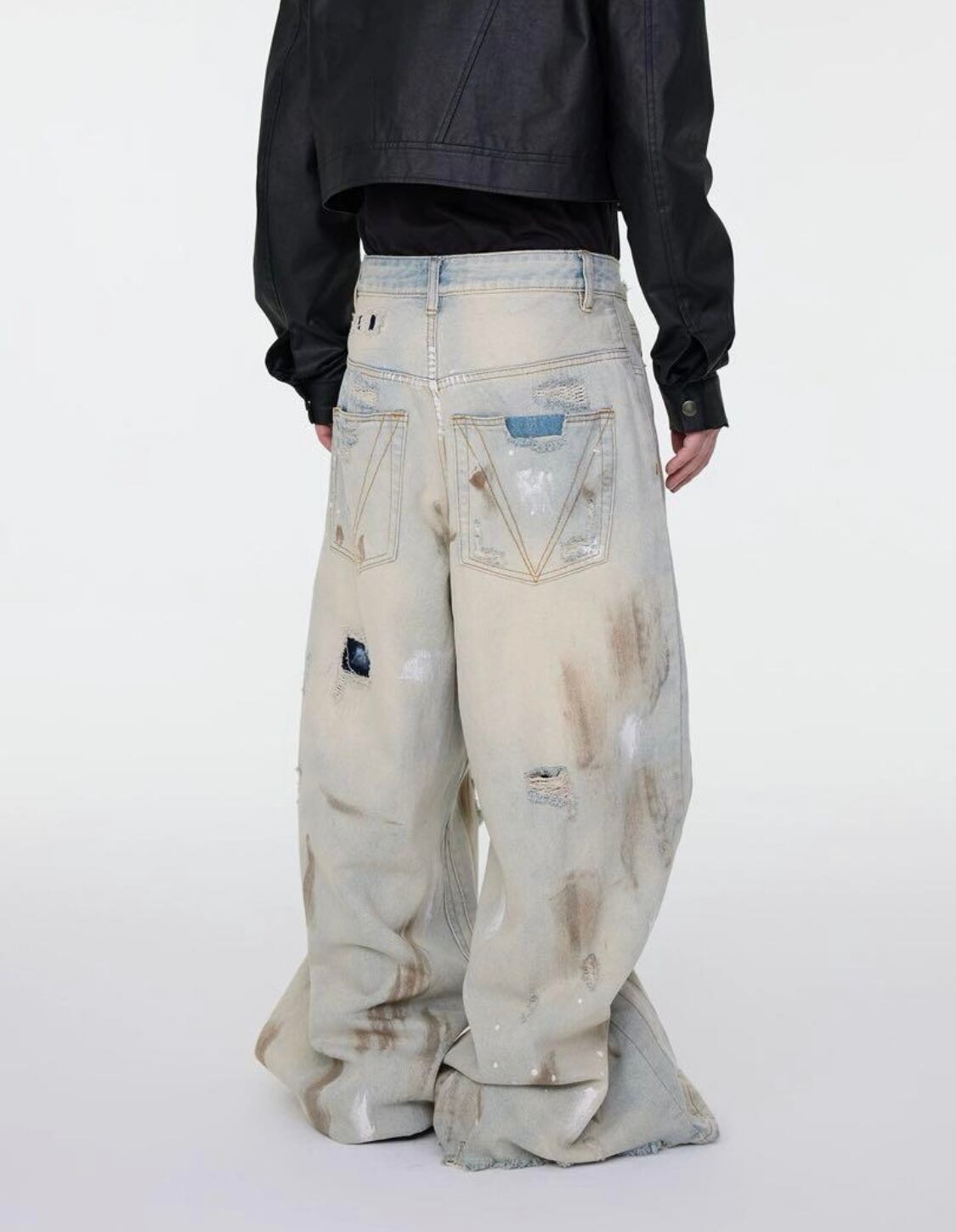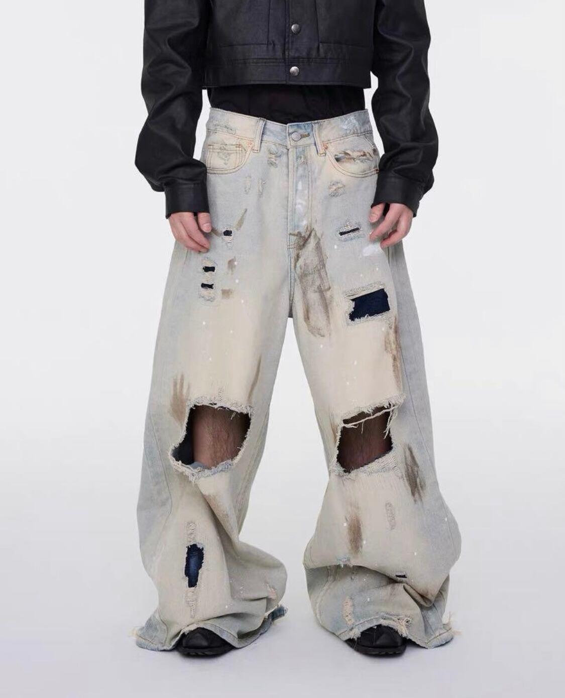 新作の激しいダメージ加工や刺繍が施された、