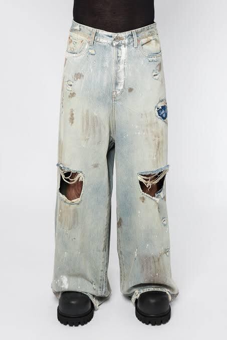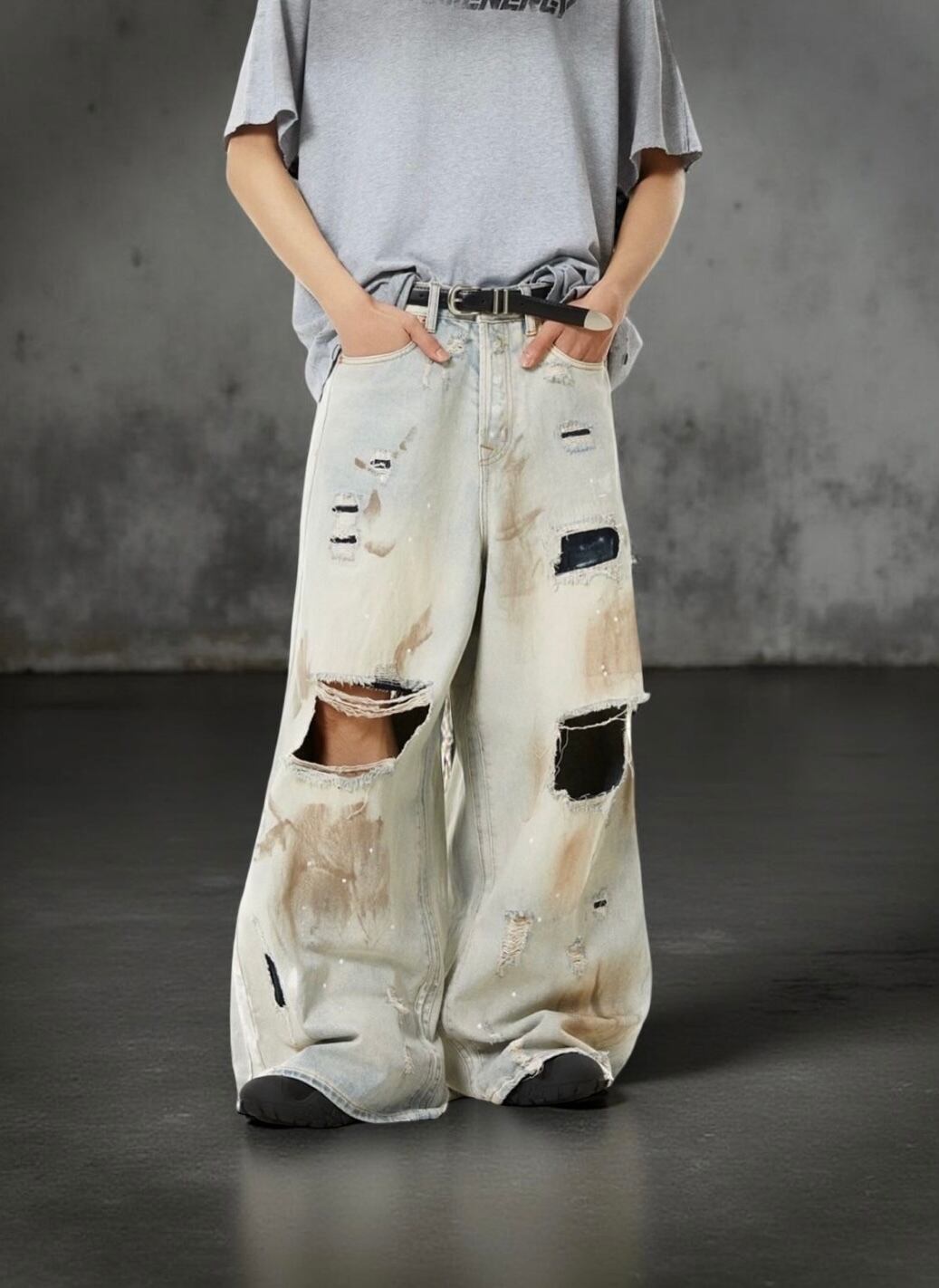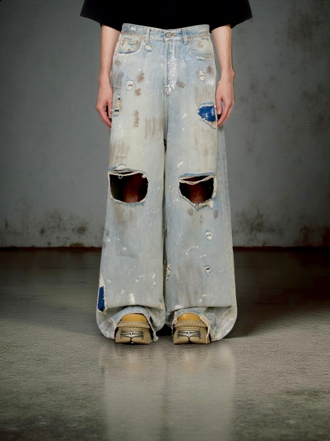 《グランジ》スーパーワイドバギー ダメージジーンズ