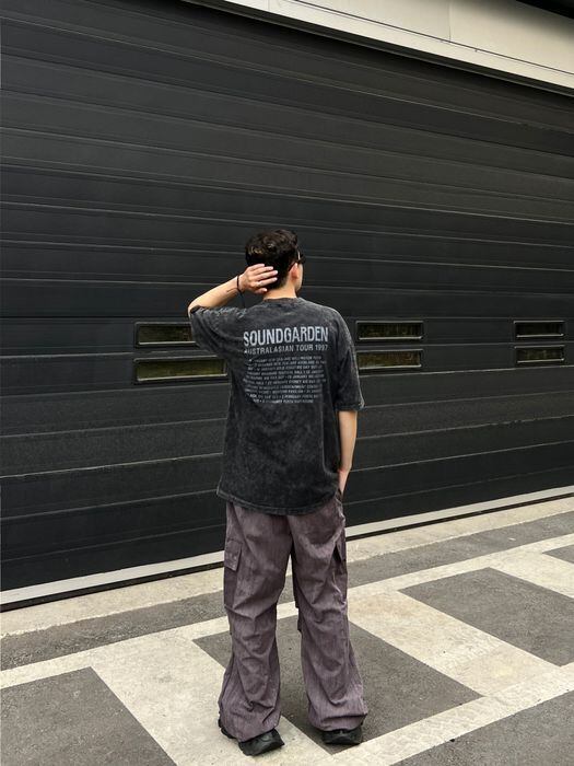 大胆なプリントデザインは、シンプルコーデにインパクトを与え、街中で視線を引きつけます。