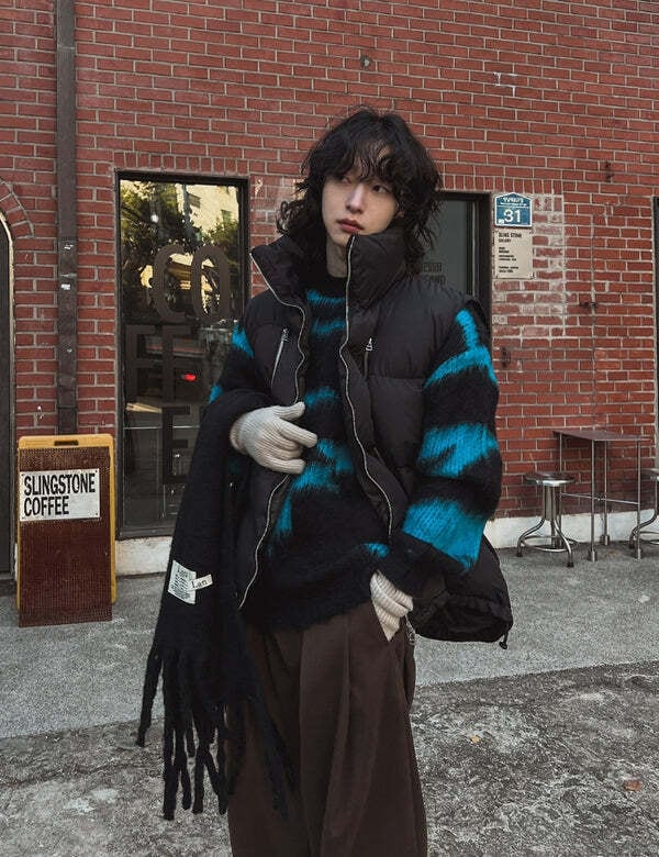 ふわふわとしたモヘア素材が心地よい着心地を提供し、冬のコーディネートにぴったりのアイテムです。