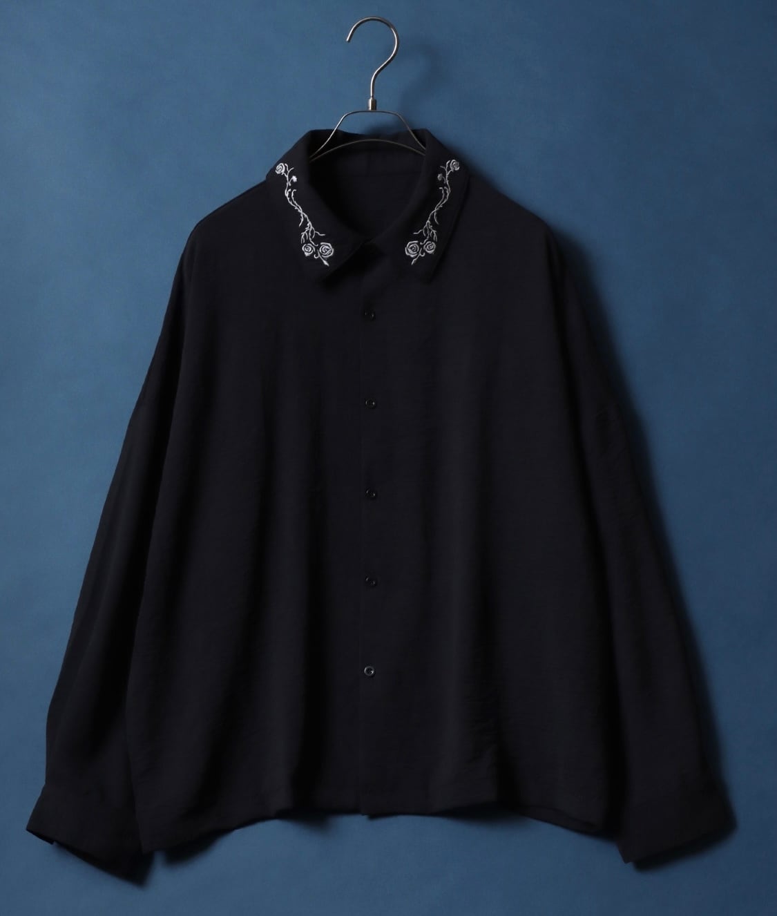 花柄刺繍 ドルマンスリーブオーバーサイズシャツ